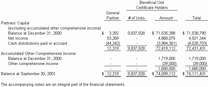 The interim unaudited financial statements have been prepared according to the rules and regulations of the Securities and Exchange Commission. Certain information and footnote disclosures normally included in financial statements prepared in accordance with accounting principles generally accepted in the United States of America (GAAP) have been condensed or omitted according to such rules and regulations, although management believes that the disclosures are adequate to make the information presented not misleading. The financial statements should be read in conjunction with the financial statements and notes thereto included in the Partnership's Annual Report on Form 10-K for the year ended December 31, 2000. In the opinion of management, all normal and recurring adjustments necessary to present fairly the financial position at September 30, 2001, and results of operations for all periods presented have been made. The results of operations for the three and nine-month periods ended September 30, 2001 are not necessarily indicative of the results to be expected for the full year.