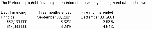 During the three months ended September 30, 2001, the Partnership incurred interest expense of $409,860 on the $49,210,000 of debt financing obtained in connection with securitizing certain of its tax-exempt mortgage bonds. For the comparable period of 2000, the Partnership incurred interest expense of $509,823 on $38,155,000 of debt financing. Accordingly, interest expense decreased $99,963 (20%) for the three months ended September 30, 2001, compared to the comparable period of 2000. This decrease is attributable to the decline in short term tax-exempt interest rates from 2000 to 2001. Such rates averaged 3.31% for the three months ended September 30, 2001 compared to 4.50% for the comparable period of 2000.