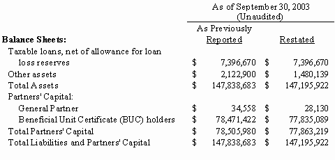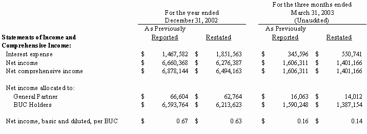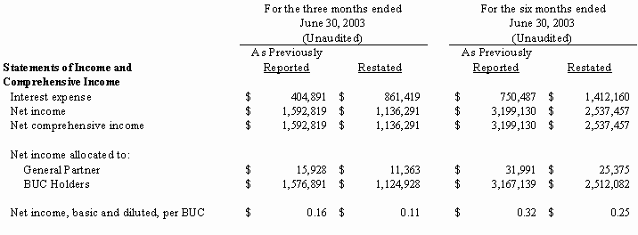The 2002 and 2003 financial statements and the accompanying notes in the Partnership's 2003 Form 10-K reflect the restated amounts.