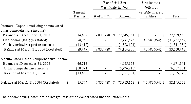Consolidated Statement of Partners' Capital for the three months ended March 31, 2004
