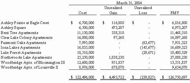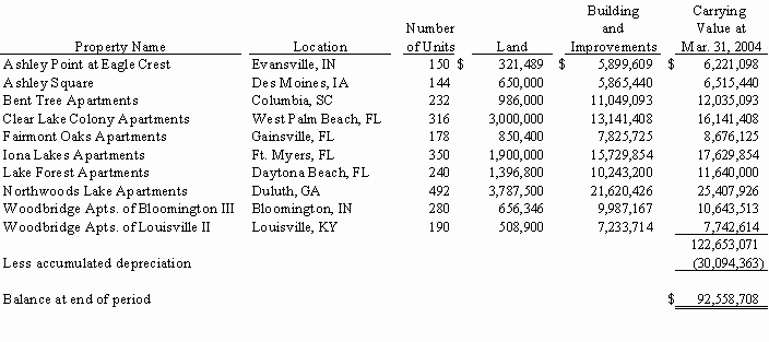 The Partnership's VIEs' investments in real estate as of March 31, 2004 are comprised of the following:
