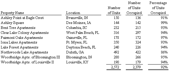 The following table provides information regarding the occupancy of the properties included in the VIE consolidation as of March 31, 2004.
