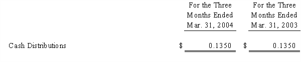 The following table sets forth information relating to cash distributions paid per BUC holder for the quarters ended March 31, 2004 and 2003: