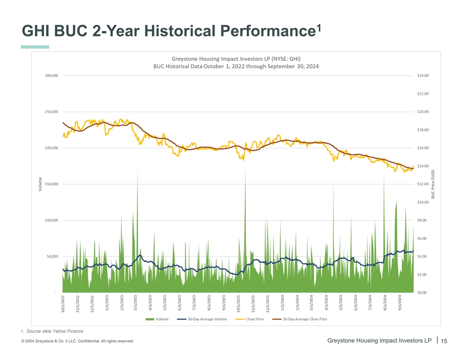 1 GHI BUC 2-Year Historical Performance 1. Source data Yahoo Finance © 2024 Greystone & Co. II LLC. Confidential. All rights reserved. Greystone Housing Impact Investors LP 15